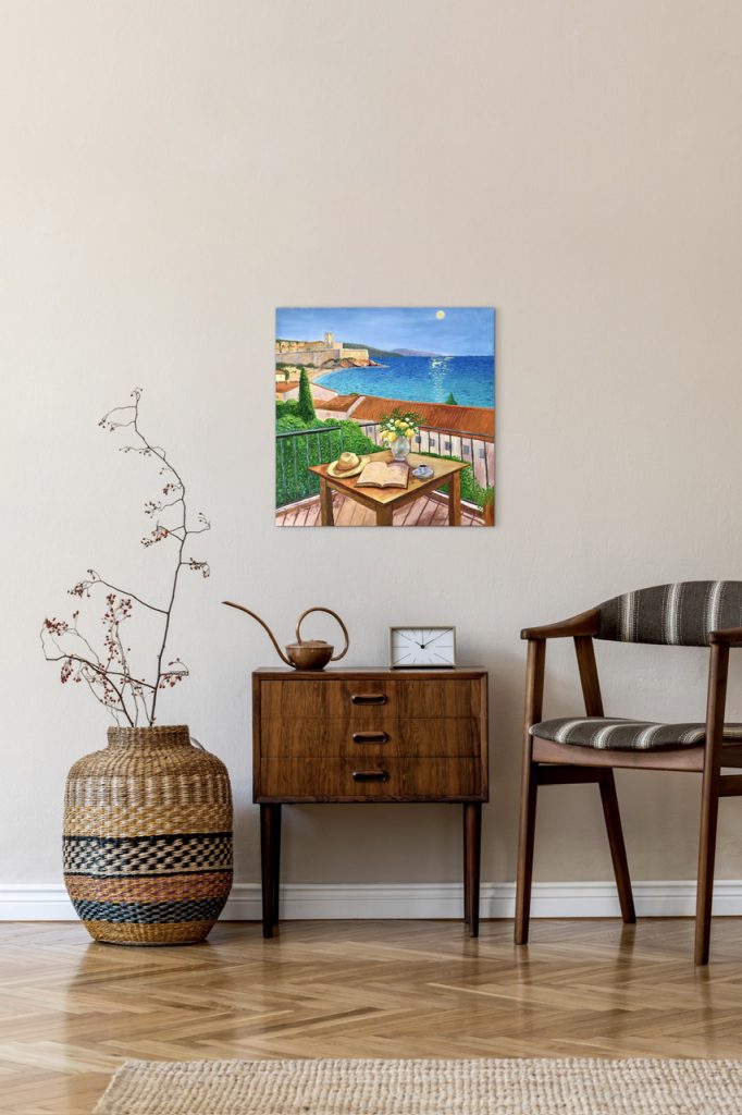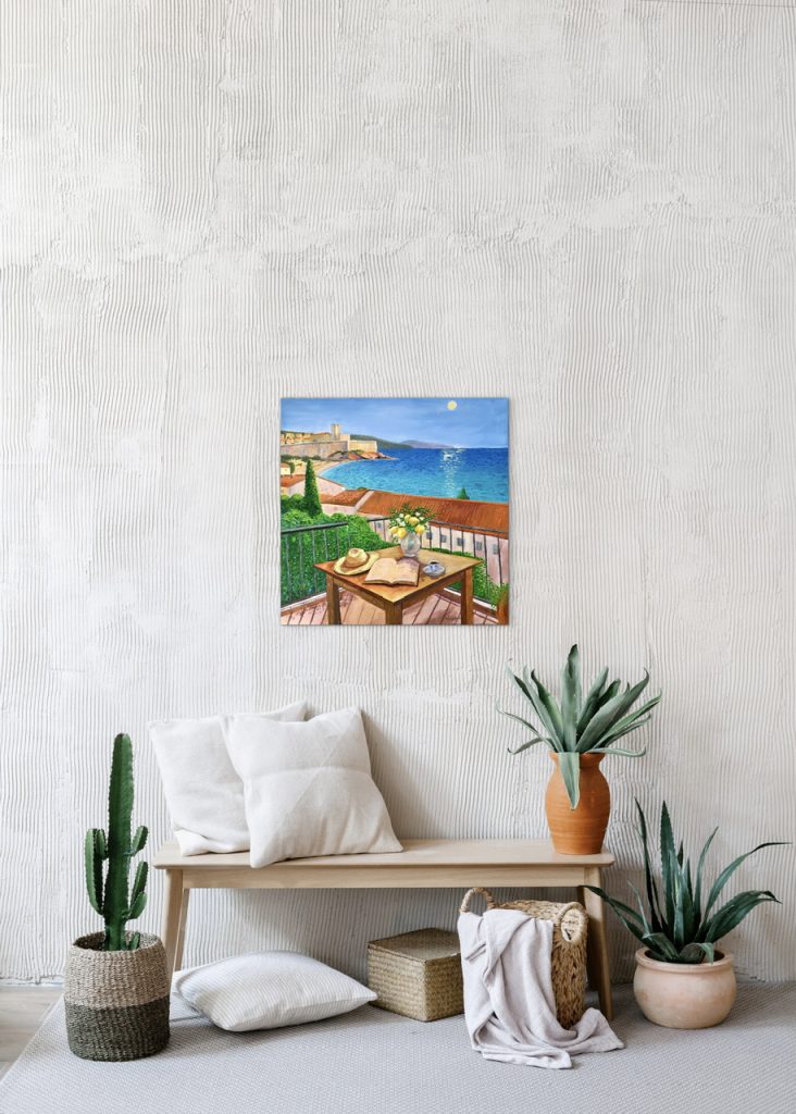 Inspired by life along the French Riviera, this painting reflects the beauty of everyday moments and the emotional presence of place. It is a work created to be lived with — offering serenity, warmth, and a sense of escape within the home.