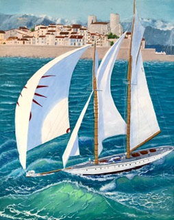 “Sailing Through Antibes” an original oil on canvas, 16”x20”x1.5”, 3D textured painting from my French Riviera series. The scene depicts a sailboat gliding through the serene turquoise waters, surrounded by lush greenery, including palm trees, a pine tree perched on the cliffside, and a blooming cactus. In the distance, the charming cityscape of Antibes rests… Continue reading Sailing Through Antibes