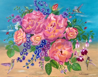Peonies in Bloom, Hummingbirds in Flight
