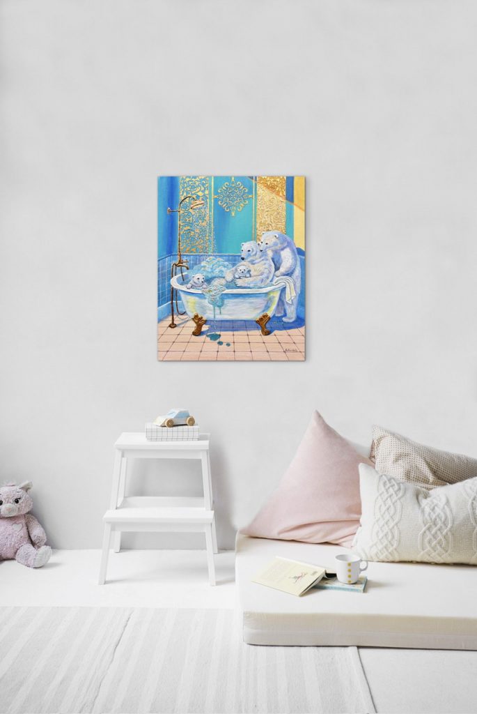 The Bath Time Stories collection was inspired by my desire to turn simple everyday rituals into meaningful visual stories for children. Bath time is a moment of safety and love, and I aim to preserve that feeling through storytelling art. This one-of-a-kind artwork is designed for children’s rooms, nurseries, and family spaces, while also appealing to collectors who value narrative and craftsmanship.