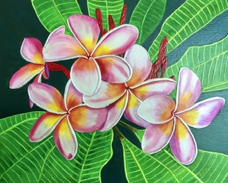 Tropical Whisker Whimsy oil on canvas, 16”x12”x1.5”, giclee, prints, cards are available.